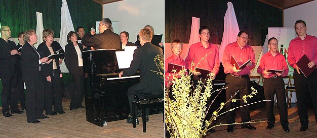 Der Junge Chor Balsbach war mit rund 20 Sängerinnen und Sängern der größte, und ebenfalls ein hervorragendes Ensemble. Vom Dirigenten Manfred Schäfer am Klavier mächtig aufgemischt, brachten sie afrikanische Songs wie "Siya Hamba" und "Sana Sananina" temperament- und ausdruckvoll zu Gehör. Und passend dazu "Der Löwe schläft heut Nacht". Schon aufgelöst hatte sich der Projektchor des MGV Haag. Erst die Einladung aus Lindach erweckte ihn wieder zum Leben. Innerhalb eines Vierteljahrs erarbeitete Chorleiter Frank Mühlbach mit seinen Sängern ein neues, auftrittsreifes Repertoire. "So lange man träumt" war ebenso zu hören wie "Fürstenfeld" und "Let it be". Die Pause zwischen den zwei Konzertblöcken war musikalisch voll ausgefüllt. Mit flotter Livemusik der Gruppe "Swing Up".