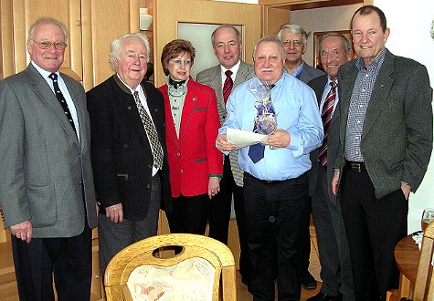 Gratulationscour für Dieter Jeitner (Foto:privat)(hr) (bs) Eine große Zahl von Gästen hatte sich gestern in der Königsberger Straße eingefunden, um Dieter Jeitner zum 60. Geburtstag zu gratulieren. Nicht nur Bürgermeister Bernhard Martin war gekommen, um dem seit mehr als 20 Jahren amtierenden Stadtrat Glück zu wünschen, sondern auch die SPD-Spitze mit dem Vorsitzenden Manfred Wernz und Fraktionschef Bruno Schmitt, Vorstand und Ehrenrat des Sportausschusses der Eberbacher Vereine, die Marinekameradschaft, die KG Kuckuck und Vertreter fast aller Eberbacher Sportvereine. Eine besondere Überraschung war das Geburtstagsständchen des Fanfarenzugs, dessen Vorstand Dieter Jeitner seit vielen Jahren angehört.
