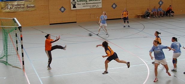 SGH-Damen wieder mal mit Glück zum Sieg (Foto:Claussen)(jc) (cm) Zu ihrem letzten Heimspiel der Saison 2005/2006 war bei den Damen der SGH Waldbrunn/Eberbach die Mannschaft aus Meckesheim zu Gast. Obwohl die Meckesheimerinnen im unteren Tabellendrittel anzufinden sind war bereits das Hinspiel hart umkämpft, so dass man davon ausgehen musste, dass auch das letzte Aufeinandertreffen in dieser Runde kein Selbstläufer wird. Wer sich während der Saison die Begegnungen der SGH anschaute war auch diesmal nicht mehr zu überraschen. Wie so oft lag man zu Beginn bis zum 3:3 immer in Führung. Danach passte wieder mal nichts mehr zusammen, so dass sich Meckesheim auf 3:5 absetzen konnte und diesen zwei Tore Vorsprung auch in die Pause rettete (9:11). Die ersten Gegentore der Partei resultierten allesamt aus individuellen Fehlern einzelner Spielerinnen. Zudem spielte man im Angriff viel zu kompliziert und vergab wiederum etliche Torchancen. Nach einer heftigen Pausenansprache hoffte die SGH auf das Glück der bisherigen Saison, Spiele trotz mehrerer Rückstände noch umzubiegen und am Ende das Feld als Sieger zu verlassen. Aber anstatt dass die SGH den Rückstand verkleinern konnte setzte sich Meckesheim sogar auf 12:15 ab. Als die SGH zwei schnelle Kontertore zum 14:15 erzielen konnte, keimte wieder Hoffnung auf. Die Zuschauer feuerten die Heimmannschaft an und die Gastgeberinnen glichen zum 16:16 aus. Bereits sieben Minuten vor Schluss ging man mit 18:17 in Führung. Im weiteren Spielerlauf konnte keine der beiden Mannschaften mehr ein Tor erzielen, Meckesheim musste zudem noch in der 54. Minute eine rote Karte hinnehmen.