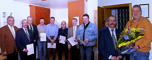 Für ihre 10-jährige Mitgliedschaft wurden Werner Borst, Joachim Joksch, Hans-Jörg Schlemmel, Anton Schork, Erich Haaf, Albert Kübler, Thomas Kuchar, Marianne Kübler und Heike Schölch ausgezeichnet. Eine Auszeichnung für 25-jährige Treue ging an Siegfried Schmitt, Theo Kampert und Johanna Sigmund. Für ihr langjähriges, ehrenamtliches Engagement auf Vorstandsebene durften sich Günter Gepperth, Erich Haaf, Werner Mechler und Harry Krieger über eine Ehrung freuen.