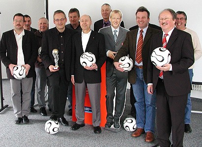 Eberbach spielt während der Fifa-WM 2006 eigene Meisterschaft aus Das Organisationskomitee der Eberbacher Jugend-WM 2006 mit den Vertretern der Stadt, Schulen, Vereine und Sponsoren, gestern bei der Turniervorstellung in den Räumlichkeiten der Sparkasse in Eberbach. (Foto:Claussen)(jc) In Zusammenarbeit mit den Eberbacher Fußballvereinen SV, VfB und SG Rockenau, den Eberbacher Schulen, vertreten durch Rolf Schieck und Richard Wurm, veranstaltet die Stadt Eberbach am Samstag, 8. Juli von 10 – 19.30 Uhr im Stadion in der Au die "Eberbacher Jugend-WM 2006". Unterstützung erhält die Stadt dabei von der Sparkasse Neckartal-Odenwald und vom Lions-Club Eberbach, der die diesjährigen Einnahmen aus der Frühlingsfest-Tombola für diesen Zweck zur Verfügung stellt.