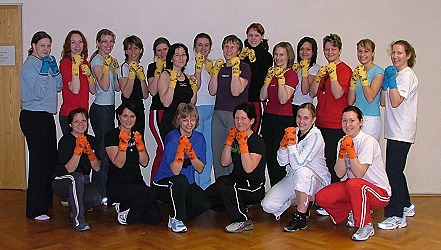 20 erfolgreiche Prüflinge in Eberbach. Die Trainerinnen und die Prüflinge mit "Gelb-Bandagen" stehend von l.: Trainerin Sarah-Jeanny Friehs, Melanie Schäfer (Beerfelden), Barbara Stumpf (Schönbrunn), Andrea Albert (Hirschhorn), Anette Schölch (Eberbach), Anja Wäsch (Schwanheim), Martina Mackamul (Pleutersbach), Birgit Brandstetter (Hirschhorn), Corina Malcher (Rockenau), Christa Hornischer, Jasmin Schölch (beide Eberbach), Petra Bißdorf (Neckarsteinach) und Rebacca Knapp (Eberbach), sitzend v.l. mit "Orange-Bandagen": Manuela Diemer, Diana Mörixbauer (beide Eberbach), Irene Herbert (Schwarzach), Jeanette Fültz (Zwingenberg), Barbara Menger (Eberbach) und Julia Horsch (Neckarzimmer). Birgit Niggl (Neckarzimmern) (Orange) und Gundula Weber (Eberbach) (Gelb) sind nicht auf dem Foto. (Foto: privat)(bro) (mf) Einen sehr harten, aber auch erfolgreichen Samstag hatten die 19 TAE BOO Damen des Budokai Asahi Eberbach e.V., die im März ihre Student Degrees-Prüfung ablegten. Nach einem langen Trainingstag, der viel Kraft, Ausdauer und Konzentration forderte, traten die Damen die Prüfung (Upgrated) für die "gelbe und orangene Bandage" an. Sie bezwangen ihren Willen und legten die Prüfung mit großem Erfolg ab. Nun sind sie ebenfalls, wie ihre Trainerinnen, bei der IFAA registriert und können in einem halben Jahr die nächste Prüfung antreten.
