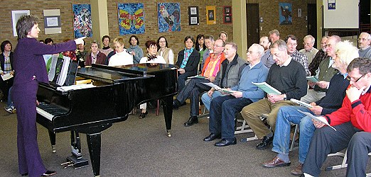Bei den Proben führte Ria Günther ihre Schützlinge mit liebenswürdig-energischer Geduld sicher durch alle musikalischen Klippen. Am Sonntagnachmittag schließlich waren Chor und Leiterin zufrieden, alles hat bestens geklappt, das Fundament für die Chorstellen steht. In den nächsten Wochen wird nun an den Feinheiten gearbeitet.