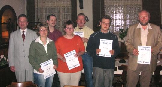 Günter Müller als 1. Vorsitzender bestätigt – Neuer musikalischer Leiter Die anwesenden geehrten Mitglieder mit dem 1. Vorsitzenden Günter Müller (re.), Bürgermeister Bernhard Martin (li.), sowie dem Stabführer und neuen musikalischen Leiter Jochen Benkwitz (3.v.r.). (Foto:Müller)(bm) Am vergangenen Freitag hielt der Fanfarenzug der Stadt Eberbach seine jährliche Generalversammlung ab. Nach der Begrüßung durch den 1. Vorsitzenden Günter Müller und Bürgermeister Bernhard Martin, blickte Stabführer Jochen Benkwitz auf ein erfolgreiches Vereinsjahr mit 29 Auftritten zurück. Nach dem Rechenschaftsbericht des 1. Vorsitzenden und dem Kassenbericht der Kassenwartin Claudia Lenz folgten die Neuwahlen der Gesamtvorstandschaft. Sämtliche Vorstandsmitglieder wurden wiedergewählt. Alfred Huber, der das Amt des musikalischen Leiters jahrelang begleitete, gab sein Amt an den Stabführer Jochen Benkwitz ab. Schließlich wurde Claudia Müller als Vergnügungsausschussvorsitzende und Dominik Joho als Jugendvertreter neu in die Vorstandschaft gewählt. Bei den anschließenden Ehrungen wurden noch einige Mitglieder für ihre langjährige Mitgliedschaft im Fanfarenzug der Stadt Eberbach geehrt. Dies waren im einzelnen: