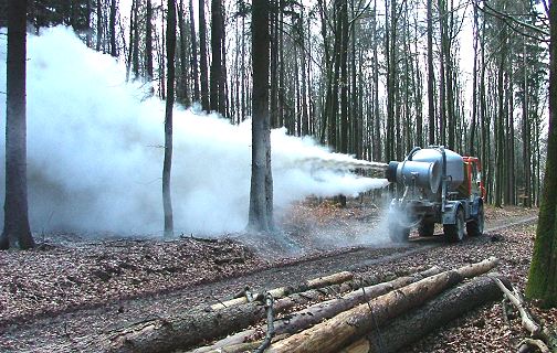 Waldschutzkalkung am Frieseneck und Hirschbergkopf (Foto:StVE)(hr) (stve) Ab heute bis voraussichtlich Donnerstag, 13. April, wird am Frieseneck und Hirschbergkopf eine Bodenschutzkalkung durch Verblasen von Fahrzeugen aus durchgeführt. Da hierbei ein dichter Kalkstaubnebel entsteht, werden die Waldbesucher gebeten, die durch Hinweisschilder gesperrten Bereiche zu meiden.