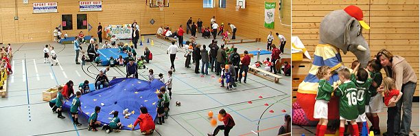 Spaß bei Bambini-Spielfest aber kein Zuschauerinteresse an Futsal-Cup (Fotos:Claussen)(jc) Am vergangenen Samstag, stand beim SV Eberbach in der Hohenstaufen-Sporthalle ein Aktionstag des Badischen Fußballverbandes (BFV) auf dem Programm. Das Endturnier um den "3.Europa-Park-Futsal-Cup" war im Rahmen eines Bambini-Hallenspielfestes dabei als Höhepunkt am Nachmittag angedacht. Zumindest in der Zuschauergunst war dieser Teil der Veranstaltung, die gemeinsam mit dem Fußballkreis Heidelberg und dem Europa-Park Rust organisiert wurde, ein Flop. Nach dem am Vormittag die Halle beim Spielfest noch recht gut gefüllt war und sich die Kinder bei Sport, Spiel und Show-Einlagen vergnügen konnten, waren am Nachmittag die Mannschaften fast gänzlich unter sich. Sieger beim Futsal-Cup wurde der FC Friedrichsfeld, Eberbacher Teams waren nicht vertreten.