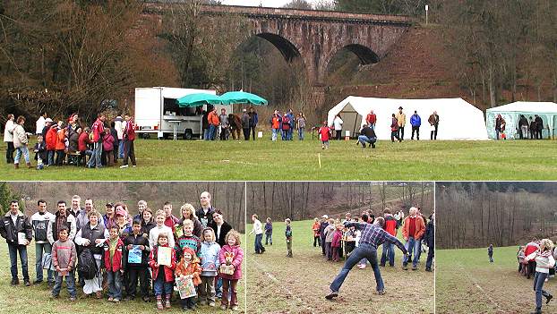 Ostereierweitwurf des Heimat- und Verkehrsvereins Friedrichsdorf Unten die Sieger und Platzierten sowie Titelverteidiger Lutz Friedrich und die Siegerin der Damenkonkurrenz, Diana Gerigk, bei einem ihrer insgesamt vier Versuche (Fotos:Claussen)(jc) In Friedrichsdorf flogen heute wieder die Ostereier. Der Weitwurfwettbewerb wurde wieder in nach Alter gestaffelten Kinderklassen und sowie in einer Damen- und Herrenkonkurrenz ausgetragen. Wohl aufgrund der kühlen Witterung konnten die Bestweiten von über 70 Metern aus dem vergangenen Jahr diesmal nicht ganz erreicht werden. Titelverteidiger Lutz Friedrich musste sich mit 65,70 Metern mit dem dritten Platz begnügen. Sieger wurde mit 66.90 Metern Abdellah Haddoun, hauchdünn vor Frank Rettenbacher, der sein „Sportgerät“ auf 66,60 Meter beförderte. Bei den Damen siegte Diana Gerigk mit 42,15 Metern vor Tanja Claus (32,35m) und Katrin Holzner (29,40m).
