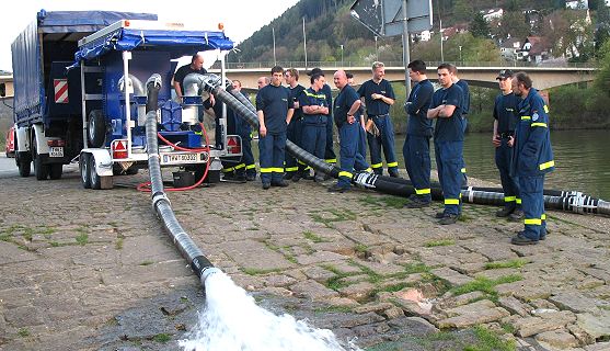 Neue Hochleistungspumpe für Eberbacher THW (Foto:privat)(cr) (as) Seit Ende 2003 ist, nach einer Umverteilung der Fachgruppen im Technischen Hilfswerk (THW), in Eberbach eine Fachgruppe Wasserschaden/Pumpen stationiert. Am vergangenen Samstag wurde diese Fachgruppe mit ihrem wichtigsten Gerät ausgestattet: einer 5.000-Liter/min-Hochleistungspumpe.