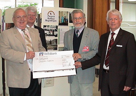 Volksbank spendet an OTK Dr. Fred Adelmann, Wilfried Herbold, Alexander von Kirchbach und Hugo Sablowski (v.l.). (Foto:C.Richter)(cr) Im Rahmen der gestrigen Ausstellungseröffnung "20 Jahre Tschernobyl-Havarie" (wir berichteten) überreichten Wilfried Herbold, Vorstandsmitglied der Volksbank Neckartal, und Marketingleiter Hugo Sablowski einen Scheck im Wert von 500 Euro an Dr. Fred Adelmann und Alexander von Kirchbach, Vorstandsmitglieder des Förderkreises Odenwald-Hilfe für Tschernobyl-Kinder (OTK).