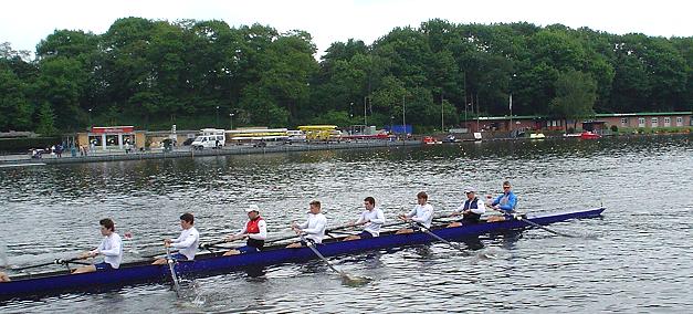 Boris Mayer und Jan Grotewohl waren zu einer internationalen Regatta im französischen Auigbelette in der Nähe von Grenoble gereist. Mit Ruderkameraden aus Trier starteten sie im Vierer und in der Königsklasse, dem Achter. Beide Mannschaften waren erst kurz zuvor zusammengestellt worden. Im Vierer lief es für sie nicht ganz optimal. Sie fuhren nur fünfzehntel Sekunden am Finale vorbei. Im Achter machten sie dann mächtig Dampf. Als zweites von zehn Booten und der drittbesten Zeit im Vorlauf sicherte sich die deutsche Mannschaft die Teilnahme am Finale. Hier war sie bis kurz vor dem Ziel noch auf Medaillenkurs. Erst auf den letzten Metern wurde sie von erfahreneren Teams abgehängt und musste sich mit dem sechsten Platz begnügen. Ein kleiner Trost indes blieb ihnen. Der französische Meister vom vergangenen Jahr erzielte Platz fünf.