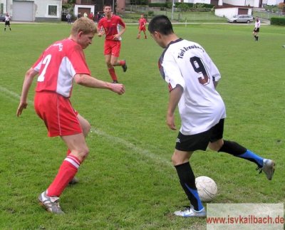 (lf) (fm) Am Sonntag den 21.05.06 stand das letzte Heimspiel für die ISV Kailbach auf dem Programm. Zu Gast im Ittertal war Türk Breuberg. In den ersten fünf Minuten spielte sich das Spiel im Mittelfeld ab. Nach 6 Minuten kamen die Gastgeber durch Fabian Wien das erste Mal in den Strafraum der Türken, wo Wien den Ball quer auf Andreas Graf spielte, der die Kugel schön im Netz unterbringen konnte – 1:0. In der zehnten Minute hatten die Gäste ihre erste Chance, die aber weit über das Tor flog. Gleich im Anschluss stürmten die Türken erneut auf das ISV-Gehäuse zu, wo sie aber an ihrer eigenen Überheblichkeit scheiterten und somit diese 100 Prozentige Torchance vergaben. Nach einer knappen halben Stunde verfehlte ein Kopfball von Andreas Graf das Tor nur um Zentimeter. Fünf Minuten später war es Bruder Stefan nicht gegönnt, seinen tollen Schuss im Tor der Breuberger unterzubringen. In der 43. Spielminute flankte Özpinar Redat Mehmet auf den total freistehenden Kalkan Benyamin, der den Ball mit dem Kopf an den linken Pfosten köpfte, von dort aus sprang der Ball an den anderen Pfosten und kullerte dann gerade noch ins Tor der ISV-1:1. Sehr unglücklicher und überraschender Gegentreffer! Kurz darauf pfiff Schiedsrichter Werner Kist (SG Oberschefflenz) zur Halbzeit.