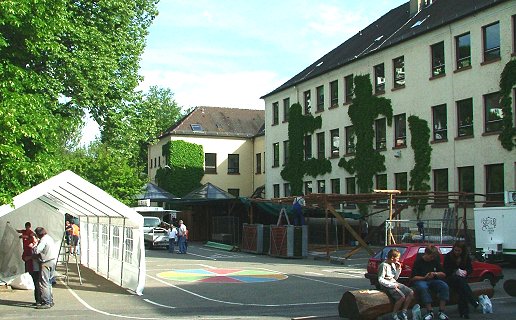 Vorbereitungen zum Frühlingsfest auf Hochtouren Im Hof der Dr.-Weiß-Schule wird fleißig aufgebaut. (Foto:Richter)(hr) Übermorgen beginnt das Eberbacher Frühlingsfest. Erstmals in diesem Jahr wird der Hof der Dr.-Weiß-Schule in das Festgelände einbezogen. Hauptsächlich finden dort die Standbetreiber Platz, die in den Vorjahren in der Zwingerstraße zwischen Schule und Bundesstraße 37 untergebracht waren.