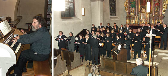 Konzert zugunsten Renovierung der Strümpfelbrunner Kirchenorgel Der Organist und Pianist Friedrich Haller überzeugte beim Benefizkonzert für die Renovierung der Kirchenorgel unter der Gesamtleitung von Valdo Abate gestern in der Katholischen Pfarrkirche St. Maria ebenso wie der Chor der Friedrichsdorfer und Walldorfer Kantorei mit den Solisten Catharina Marquet (Sopran), Annemarie Tributh (Alt), Peer-Martin Sturm (Tenor), Michael Berning (Bass) und Stefan Küchler (Harmonium). (Fotos: Baumgartner)(tb) Zu einem besonderen Konzertabend hatte die Katholische Kirchengemeinde St. Maria Waldbrunn in die Pfarrkirche von Strümpfelbrunn gestern eingeladen. Die Friedrichsdorfer Kantorei mit dem gebürtigen Strümpfelbrunner Siegfried Krumpek als Vorsitzenden, gastiert im Rahmen eines Benefizkonzertes zugunsten der Renovierung der Kirchenorgel in der Pfarrkirche auf. Dabei kam die "Petite Messe solennelle" von Gioacchino Rossini, und die "Fantasie f-moll" von Wolfgang Amadeus Mozart für Orgel (Köchelverzeichnis 608) zu Vortrag.