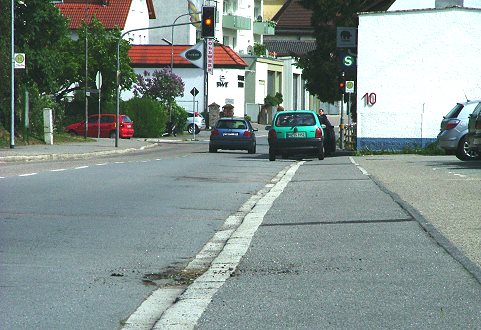 Gehweg in der Güterbahnhofstraße muss verlegt werden (Foto:Richter)(hr) Weil beim Grundstücksverkauf für den geplanten Verbrauchermarkt an der Güterbahnhofstraße auch ein Teil des derzeitigen Gehwegs mitverkauft wurde, beschloss der Eberbacher Gemeinderat in seiner letzten Sitzung die so genannte "Entwidmung" dieses rund 60 cm breiten Gehwegstreifens (insgesamt rund 100 Quadratmeter) als öffentliche Verkehrsfläche. Der Gehweg soll im Zuge der Baumaßnahmen zur Straße hin verlagert und um einen Radweg ergänzt werden.
