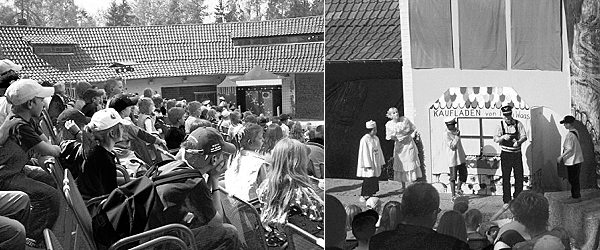 KNAX-Kindertheater in Schwarzach Links: Die KNAX-Klub Mitglieder im Freilichttheater in Schwarzach, rechts: eine Szene auf der Bühne. (Fotos: privat)