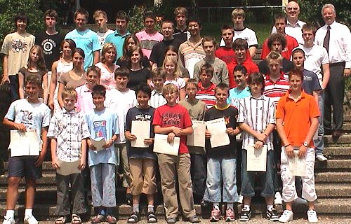 Gestern gab es für diese besonderen Erfolge Urkunden aus den Händen von Rektor Helmut Schultz und Sportlehrer Kurt Wilhelm. "Die HSG-Schwimmer waren in Topform, die guten Leistungen der Mannschaften des Schuljahres 2005/2006 konnten noch übertroffen werden" so das Fazit der Pädagogen. Immerhin 51 Schülerinnen und Schüler wurden ausgezeichnet, die erfolgreichste Mannschaft waren die Jungen der Wettkampfklasse II (Jahrgang 1989-1992). Sie siegten bei der Kreismeisterschaft und im Oberschulamtsfinale. Im Landesfinale schafften sie es auf Rang 5. Die Mädchen der WK I siegten auf Kreisebene und landeten im Oberschulamtsfinale auf Platz 3.
