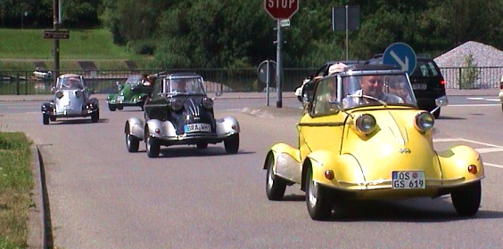Im Schneewittchensarg durch Eberbach (Foto:Richter)(hr) Für einen Hauch von 50er-Jahre-Nostalgie sorgte der Messerschmitt-Club Deutschland vorgestern in Eberbach. Die Freunde des legendären Kabinenrollers - im Volksmund auch "Schneewittchensarg" genannt - waren aus ganz Deutschland zu ihrem Jahrestreffen in Lobbach zusammengekommen. Eine Ausfahrt mit mehreren Dutzend Fahrzeugen ging am Samstag gegen Mittag nach Eberbach, wo sie nach einigen Stadtrunden am Seniorenstift im Ortsteil Rockenau beim "Tag der offenen Tür" Station machten.