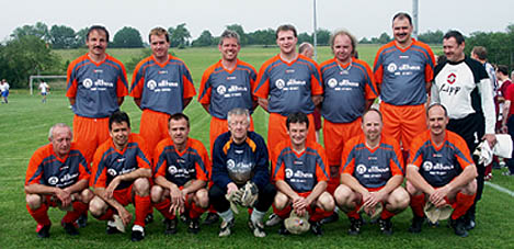Willkommene Spende für AH-Mannschaft Unser Foto zeigte die AH-Mannschaft des TSV Strümpfelbrunn in ihren neuen Trikots zusammen mit dem 1. Vorsitzenden Ralf Wieland (untere Reihe rechts) und dem Gebietsrepräsentanten Jürgen Herhoff der Firma Allkauf-Haus (obere Reihe 3.v.r). (Foto: Baumgartner)(tb) Über eine willkommene Trikotspende konnte sich kürzlich der TSV Strümpfelbrunn freuen. Im Rahmen des kürzlich veranstalteten Sportfestes überreichte der einen nagelneuen Satz Trikots an die AH-Mannschaft des TSV Strümpfelbrunn. Für den TSV Strümpfelbrunn bedankte sich der 1. Vorsitzende Ralf Wieland bei Jürgen Herhoff für diese Unterstützung.