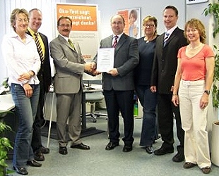 DAK- Kundenbefragung 2006 Urkundenübergabe in der DAK-Geschäftsstelle Eberbach. Die Mitarbeiter v.li.: Tanja Vogel, Kurt Kaufmann, Gebietsleiter Helmut Bötz, Bezirksgeschäftssführer Wilhelm Preugschat, Brigitte Joho, Kundenberater Marko Weiß, Birgit Ziegler. Auf dem Bild fehlen Gabi Bauer und Gunter Krauth. (Foto: privat)(bro) (bz) Was erwarten die Versicherten von ihrer Krankenkasse? Das aktuelle Ergebnis der neuesten bundesweiten DAK-Kundenbefragung gibt Antworten darauf. Besonders gute Ergebnisse erzielte die DAK in Eberbach. Die Erwartungen der Kunden wurden sogar übertroffen. Deshalb erhielt das Team der DAK Eberbach eine Auszeichnung von Gebietsleiter Helmut Bötz, dem stellvertretenden Landeschef der DAK Baden-Württemberg. Bezirksgeschäftsführer Wilhelm Preugschat, Chef der DAK Eberbach, freut sich darüber, wie zufrieden die Versicherten in den Bereichen Erreichbarkeit, Schnelligkeit, Engagement und Freundlichkeit sind. "Wir werden dieses Ergebnis als Ansporn nehmen, unseren Service weiter zu optimieren", so Preugschat.