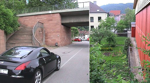 Sicherer Weg vom Bus zum Schulhof Der Treppenabgang zur Zwingerstraße (l.) birgt Gefahren. Entlang der Mehrzweckhalle soll der neue Fußweg verlaufen (r.). (Fotos:Richter)(hr) Die neue Bushaltestelle an der Neckarbrücke neben der Mehrzweckhalle soll mit einem Fußweg direkt an den Hof der Dr.-Weiß-Schule angebunden werden. Der Bauausschuss des Gemeinderats stimmte gestern der hierzu vom Stadtbauamt vorgelegten Planung zu. Diese sieht zunächst von der Bushaltestelle zur Überwindung des Höhenunterschieds eine 13 Meter lange Treppe mit zwei Zwischenpodesten vor und anschließend einen rund 25 Meter langen gepflasterten Fußweg entlang der Mehrzweckhalle. Treppe und Fußweg sollen 2,50 Meter breit werden.