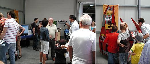 Großer Andrang auf Intellecom-Präsentations-Stand bei Mosca (Fotos:Claussen)(jc) Beim Tag der offenen Tür bei der Firma Mosca in Strümpfelbrunn (wir berichteten) war auch die Eberbacher Firma Intellecom mit einem großen Infostand vertreten. Das Interesse war aufgrund der im Trend liegenden Themen wie Home Entertainment, Mobile Navigation und der Vorstellung marktführender Softwareprodukte erwartungsgemäß groß. Andrang herrschte auch auf den Playseats mit Action-Spielen und bei der Verlosung wertvoller Preise.