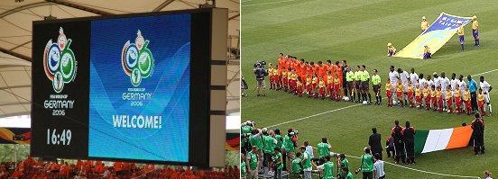 Eberbacher Jugend-WM soll Fußballglanz auch in die Au bringen Ein wenig Glanz wie bei der großen Fifa-WM (unsere Fotos) soll auch im Stadion in der Au aufblitzen. (Fotos:Claussen)(jc) (stve) Die inoffizielle Jugendweltmeisterschaft 2006 kommt nach Eberbach. 32 begeisterte Mannschaften fanden sich am 17. Juni zur Zulosung der Länder in der Sparkasse ein. Mit noch mehr Begeisterung und Aufregung wird es am kommenden Samstag, 8. Juli 2006 ab 10 Uhr im Stadion in der Au weitergehen. Die Nachwuchsfußballer, die einen Tag vor dem offiziellen Endspiel um den Titel und attraktive Preise spielen, sind bestimmt genauso hungrig nach Erfolg, wie ihre großen Vorbilder. Interessierte sind zu diesem spannenden Turnier natürlich eingeladen. Auch für das leibliches Wohl wird bestens gesorgt- die Eberbacher Fußballvereine versorgen mit Getränken und Essen.