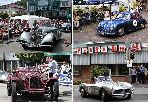 Oldtimer rollen im Minutentakt durch Eberbach Impressionen von der "Heidelberg Historic" im vergangenen Jahr. (Fotos:Archiv)(hr) Fans historischer Autos kommen am Samstag, 15. Juli, voll auf ihre Kosten. Wieder einmal wird die Oldtimer-Rallye "Heidelberg Historic" durch das Neckartal rollen und in Eberbach Station machen. Rund 180 der schönsten Autos des vergangenen Jahrhunderts sollen dabei sein, darunter so illustre Marken wie Bugatti, Mercedes, Porsche, Alfa Romeo, Jaguar, MG und Wanderer.