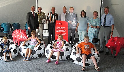 (bro) (hb) So lautete das Motto der Beratungskampagne in der Sparkassen-Hauptstelle Eberbach im Vorfeld der Fußball-Weltmeisterschaft. Integriert war in dieser vom 18. bis 28. April durchgeführten Aktion auch ein Schätzspiel, bei dem über 550 Teilnehmer ihren Tipp abgaben. In den Säulen des Fußballtores, das dekorativ die Hauptstelle Eberbach bereicherte, befanden sich insgesamt 1554 Bälle. Zur gemeinsamen Preisübergabe konnte Regionalleiter Karlheinz Emig neben Filialdirektor Peter Werner von den Sparkassen-Versicherungen auch die Gewinner begrüßen und brachte seine Begeisterung über die sehr gute Resonanz einerseits und die tollen Schätzergebnisse andererseits zum Ausdruck. Zur Auslobung kamen insgesamt zehn Preise.