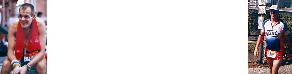 Neptun-Triathleten beim Ironman in Frankfurt Unsere Fotos zeigen Martin Hilbers nach dem Wettkampf im Ziel, während Thomas van Vossen noch auf der Laufstrecke entlang des Mainufers ist.(Fotos:privat)