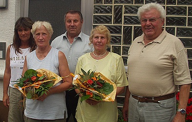 Ferienidylle in Brombach Von rechts: Heinz Strathmann, Edith Strathmann, Erwin Seib, Mathilde Seib und Sabine Stephan. (Foto: privat)(bro) (sst) Am 31. Juli wurde Familie Strathmann aus Kamp-Lintfort am Niederrhein von Sabine Stephan von der Touristinformation für 20 Jahre Urlaub in Eberbach-Brombach geehrt. Das Ehepaar Edith und Heinz Strathmann verbrachte am 26. August 1986 das erste Mal ihren Urlaub in Brombach bei Familie Mathilde und Erwin Seib auf dem Bauernhof. Zwischen den beiden Familien hat sich in den vielen Jahren eine innige Freundschaft entwickelt. Auch die Kinder und der Enkel machten schon Urlaub auf dem idyllisch gelegenen Hof.