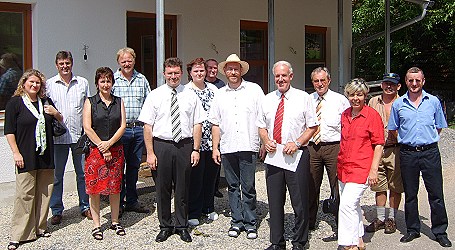 Ein NaturFreundehaus mit Flair Vor dem neuen Wirtschaftsgebäude der Naturfreunde in Zwingenberg stehen Landrat Dr. Achim Brötel, Bürgermeister Peter Kirchesch und Herbert Hauck mit dem Zwingenberger Gemeinderat. (Foto: privat)(bro) (hh) "Da habt Ihr kräftig umgebaut. Das ist ja ganz toll geworden." Dies war der Tenor, als bei strahlendem Sonnenschein Landrat Dr. Achim Brötel, Bürgermeister Peter Kirchesch und der Zwingenberger Gemeinderat das Areal der NaturFreunde im Hoffeld besuchten. Herbert Hauck, Vorsitzender der NaturFreunde-Ortsgruppe Neckarbischofsheim, die das Zwingenberger Haus seit drei Jahren betreut, stellte das Areal der NaturFreunde bei einem Rundgang vor.