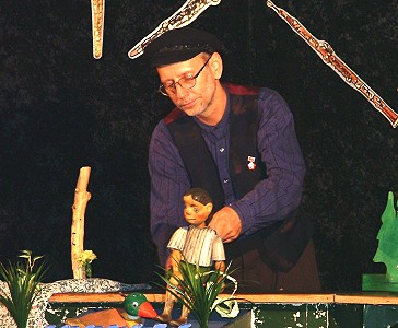 Figuren zum Leben erweckt (Foto:C.Richter)(cr) Schon beinahe ein fester Bestandteil beim Eberbacher Ferienspaß sind die Aufführungen des Figurentheaters Marotte aus Karlsruhe. Vorgestern erzählte Thomas Hänsel die musikalische Geschichte von "Peter und der Wolf". Der kleine Peter lebt mit seinem Opa in einem schönen Haus mit Garten. Der Opa ermahnt Peter immer wieder das Gartentor zu schließen, damit der böse Wolf nicht in den Garten kommen kann. Peter hört allerdings nicht auf seinen Opa, lässt das Tor offen und prompt ist auch schon der Wolf am Haus. Zum Glück kann Peter dieses riesige Ungeheuer (gestaltet aus Pappe, einer Felljacke und einem Holzstuhl) mit Hilfe eines Vogels einfangen und mit Unterstützung von Jägern in den Zoo bringen.