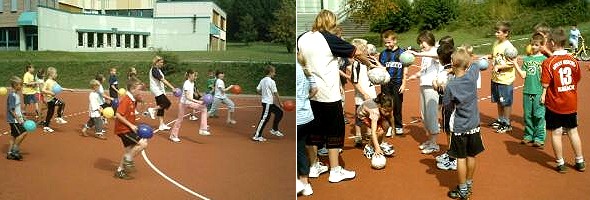 Kinder begeistern sich für den Handballsport (Fotos:privat)(ag) (jk) Im Rahmen der Ferienspiele führte die Handballgesellschaft Eberbach 1925 e. V. wieder ein Schnuppertraining auf dem Gummiplatz an der Ittertalhalle durch. 20 Kinder zwischen acht und zehn Jahren nahmen das Anbebot wahr. Nach dem Aufwärmen mit dem Luftballon ging es ans Üben. Mit großer Begeisterung lernten sie den Umgang mit dem Handball.