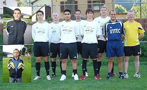 Rundenbeginn in der Kreisliga A Die Neuzugänge: Steffen Guckenhahn Torhüter vom SV Neckargerach(kleines Foto oben), Christian Schätzle vom SV Moosbrunn(kleines Foto unten) und die Mannschaft: Richard Schoch, Adi Husrep, Burak Boybayir, Manuel Konradi, Robert Petcu (alle eigene Jugend), Björn Steffen (SpVgg Neckarsteinach), Dirk Baumann (VfB Schönau)und Trainer Gerd Ehrmann (v.l.). (Fotos: privat)