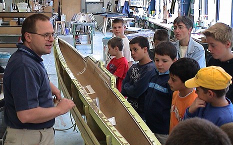 Eberbacher Ferienprogramm läuft auf Hochtouren (Foto:C.Richter)(cr) Von Langeweile in den Ferien kann in Eberbach keine Rede sein. Zahlreiche Aktionen wurden den Kindern bereits angeboten. Am Montag, 14. August, stand beispielsweise eine "Werft-Besichtigung" auf dem Programm. Zwei Gruppen zwischen 8 und 12 Jahren durften einen Rundgang durch die Bootswerft Empacher in der Rockenauer Straße machen. Betriebsleiter Robi Winterhoff erzählte von der Geschichte dieser Firma. Das Unternehmen beschäftige heute zwischen 70 und 80 Mitarbeiterinnen und Mitarbeiter und baue rund 400 bis 500 Rennboote im Jahr. Über 70 Prozent sind für den Export bestimmt. So sind die gelben Empacher-Boote seit vielen Jahren bei der internationalen Weltspitze zu finden. Staunend standen die jungen Besucher vor einem 92 Kilogramm schweren "Achter", der immerhin so lang ist wie ein sechsstöckiges Wohnhaus hoch. Der wichtigeste Teil der Besichtigung war aber wohl das Ersatzteillager. Hier nämlich konnten sich die Kinder mit Materialen rund um den Bootsbau eindecken, die sie zuammen mit einem Empacher-Kalender mit nach Hause nehmen durften.