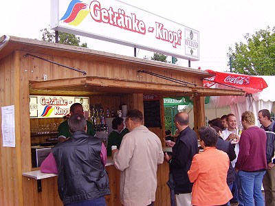 25-jähriges Jubiläum mit Freibier-Frühschoppen gefeiert (Foto:Claussen)(jc) Der Eberbacher Getränkehändler Richard Knopf feierte heute auf dem Kuckucksmarkt sein 25-jähriges Jubiläum als Marktbeschicker (wir berichteten bereits) mit einem Freibier-Frühschoppen. Im Rahmen einer Rubbellosaktion in Zusammenarbeit mit der Distelhäuser Brauerei konnte sich jeder Besucher sein Freibier selbst "errubbeln".