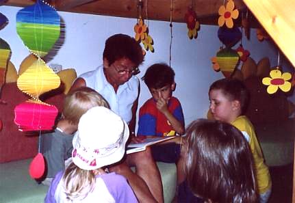 Erste Lesepaten für Kindergarten gefunden (Foto:privat)(jc) (kan) Mit einem Handzettel in der Hand: "Wir suchen Lesepaten" machten sich die Kinder vom Kindergarten Arche Noah auf den Nachhauseweg. Schon im Stuhlkreisgespräch rief ein Junge Simon): "Meine Oma kommt, die liest mir doch auch immer Geschichten vor". Und tatsächlich kam Simon am nächsten Morgen und verkündete ganz stolz: "Klar, ich hab es doch gleich gewusst, meine Oma kommt". Somit war die erste Lesepatin gewonnen. Inzwischen kann unser Kindergarten auf drei Lesepatinnen zurückgreifen, die voller Begeisterung Geschichten und Märchen erzählen und die kleine Kinderschar (meist sechs Kinder) freuen sich auf jede neue spannende Erzähl - und Märchenstunde im kuscheligen Snoezelenraum.