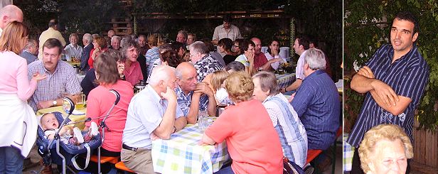 10 Jahre Münch Heizungstechnik in Friedrichsdorf Clemens Münch (r.) bei der Begrüßung seiner Gäste auf dem Sonnenhof. (Fotos:Claussen)(jc) Die Firma Münch Heizungstechnik feierte am vergangenen Samstag ihr 10-jähriges Firmenjubiläum. Hierzu waren rund 130 geladene Gäste auf den "Sonnenhof", dem zweiten "Standbein" von Firmeninhaber Clemens Münch, gekommen. Anstelle von Geschenken hatte Münch zu Spenden für die Organisation "Ärzte ohne Grenzen" gebeten. Der Friedrichsdorfer Heizungs- und Lüftungsbaumeister hat sein Berufsleben 1983 mit einer Lehre bei der ehemaligen Firma Raunser in Eberbach begonnen, musste seine Lehrstätte aber nach der Insolvenz des Betriebes wechseln und das Handwerk bei der Firma Faul in Rockenau weiter erlernen. Nach Abstechern auf Landwirtschaftsschule und in den Zivildienst bei der AWO, abwechselnd mit Gesellenjahren bei der Firma Faul wurde in den Jahren 1995 bis 1996 die Meisterschule belegt und die Firma auf dem Sonnenhof gegründet. Seit 1998 ist in die Handwerkerrolle auch die Tätigkeit als Gas- und Wasserinstallateur eingetragen. Seit diesem Jahr verfügt Münch außerdem über einen Abschluss als Elektrofachkraft für festgelegte Tätigkeiten im SHK-Handwerk.