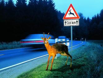 Das kleinere Übel wählen: Bei kleinen Tieren (beispielsweise einem Hasen) ist ein Zusammenprall dem Ausweichmanöver vorzuziehen, um einen Unfall zu verhindern, von dem eventuell auch andere Autos betroffen sein können.