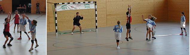 Schwieriger Saisonauftakt für die E-Jugendmädchen der SG Handball (Fotos:Claussen)(jc) Beim ersten Kontakt mit dem regelmäßigen Handballbetrieb mussten die Mädchen der E-Jugend in der SGH Waldbrunn-Eberbach gestern in der Hohenstaufen-Sporthalle erwartungsgemäß ein wenig Lehrgeld bezahlen. Gegen die erfahreneren und älteren Mädels vom TV Eppelheim hatten die Newcomer keine Chance und unterlagen mit 5:17 Toren. Das Team der beiden Trainerinnen Bianca Michalske und Luiza Schmitt kämpfte aber aufopferungsvoll und zeigte, dass es gutes Potential für die Zukunft gibt.