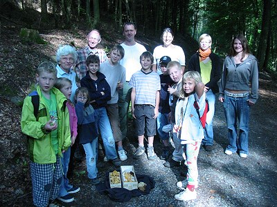 NAJU Kinder erkundeten Pilzwelt Die Teilnehmer der Pilzwanderung mitsamt ihrer Ausbeute (Pfifferlinge). (Foto:privat)(tw) (uk)Unter fachkundiger Führung von Klaus Reinhard haben die Kinder der NAJU-Gruppe Eberbach am Samstag die große Artenvielfalt der Pilzwelt erkundet. Vom gelben Knollenblätterpilz über Pfifferlinge bis hin zu den exotisch wirkenden Tintenfischpilzen; alles war zu sehen und oft auch zu riechen. Besonderen Spaß hatten die Kinder daran, den Kartoffelbovisten beim Ausstäuben zu helfen, indem sie mit kleinen Stöcken leicht auf die Pilze schlugen und somit eine Bestäubungswolke auslösten.