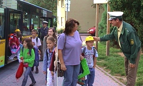 Heute Vormittag wurden beispielsweise einige Fahrzeuginsassen entdeckt, die nicht ordungsgemäß angegurtet waren. Erwin Albert und Thomas Wieder vom hiesigen Revier suchten vor allem das Gespräch mit den neuen ABC-Schützen, die seit heute unterwegs sind. Auch das Verhalten beim Aussteigen an den Bussen wurde von den beiden Polizisten beobachtet, und die Bitte "nicht drängeln" blieb zumindest heute morgen von den Schülern nicht unbeachtet.