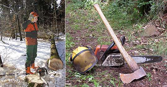 Motorsägen-Grundlehrgang (Fotos: privat)(bro) (vhs) In Zeiten hoher Energiepreise besinnen sich viele wieder auf den umweltfreundlichen Rohstoff Holz als Brennmaterial. Deshalb bietet die VHS Eberbach in diesem Semester einen Motorsägen-Grundlehrgang an, der neu ins Programm aufgenommen wurde und sich speziell an Privatwaldbesitzer und Brennholzselbstwerber wendet.