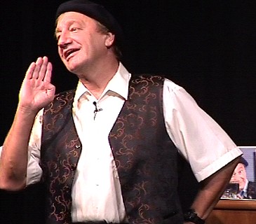 Detlev Schönauer in seiner Kultrolle „Jacques“ begann erst einmal zu erzählen, dass man nicht so ohne weiteres von Paris nach Eberbach findet. Ab da hatte der Kabarettist das Publikum und alle Lacher auf seiner Seite. In einem atemberaubenden Dialog mit den Anwesenden fragte er, woher sie kamen und ließ sich über die unterschiedlichen Temperamente der Eberbacher, Trierer, Pfälzer doch besonders über die geschäftstüchtigen Saarländer aus. Leider waren keine Sachsen darunter, er hätte ihnen mit seiner Dialektbegabung die Muttersprache streitig gemacht.