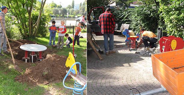 Mit rund 4.600 Euro hat auch der Bürger- und Heimatverein jetzt die Stadt Eberbach unterstützt, indem fünf Kinderspielgeräte beschafft wurden. Kürzlich wurden sie - noch rechtzeitig vor dem Apfeltag - auf dem Lindenplatz bzw. am Spielplatz Zwingerstraße aufgebaut (unsere Bilder). Der Bürger- und Heimatverein will, sobald das so genannte "Bananenbecken" der Wasserspiele an der Gewerbeschule abgebaut ist, dort weitere Spielgeräte spenden.