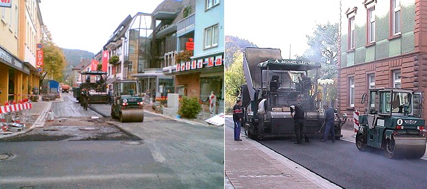 Friedrichstraße soll bald fertig sein (Fotos:C.Richter)(hr) Schneller als erwartet geht es bei der Baustelle Friedrichstraße voran. Wie Bürgermeister Bernhard Martin dieser Tage mitteilte, kann die Umgestaltung voraussichtlich schon im November endgültig fertiggestellt werden. Bis vor kurzem gingen die Planer im Stadtbauamt noch davon aus, dass die Straße erst Anfang 2007 fertig wird. Derzeit wird die Asphaltdecke aufgebracht (unsere Bilder).