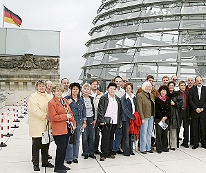 Gleich nach der Ankunft besuchte die rund 50-köpfige Gruppe das ehemalige Ministerium für Staatssicherheit, Erich Mielkes Domizil, der DDR in der Normannenstraße. Beeindruckend und bedrückend zugleich waren die Fakten in der einstigen Stasi-Zentrale. 91.016 hauptamtliche Mitarbeiter und etwa 174.000 inoffizielle Mitarbeiter kontrollierten noch 1989 die etwa 16,4 Millionen damaligen DDR-Bürger. Wesentlich angenehmer gestalteten sich dagegen der Empfang und die Bewirtung in der Landesvertretung Hessens in Berlin. Wer die "Botschaft" betritt, der steht nicht nur mit beiden Beinen auf festem Boden, dem steht auch das Selbstbewusstsein eines Landes sichtbar vor Augen, das in diesem Gebäude am Rande der beschaulichen "Ministergärten" Gestalt angenommen hat. Dass das Finanzministerium nicht nur ein Ort trockener Zahlenmaterie und mehr als nur Haushalts- und Steuerpolitik ist, erfuhr die Bergsträßer Reisegruppe beim Besuch in einem informativen Vortrag. Wenn man mit der CDU reist, dann gehört es zum Pflichtprogramm auch das Konrad-Adenauer-Haus, die Machtzentrale der CDU Deutschland, zu besichtigen. Obligatorisch ist ebenso der Besuch beim "Alten Fritz" auf Schloss Sanssouci mit einer Promenade durch die Gärten in Potsdam. Zuvor allerdings stand Schloss Cecilienhof auf der Agenda, jenes Gebäude, das Wilhelm, Sohn des letzten deutschen Kaisers, und seiner Gemahlin Cecilie bis 1945 als Wohnstatt diente und danach Tagungsort der Potsdamer Konferenz vom 17. Juli bis 2. August 1945 war. Hier verhandelten Churchill, Truman und Stalin über die Neuordnung Europas und das künftige Schicksal Deutschlands. Im so genannten Potsdamer Abkommen wurde die Demokratisierung, Entmilitarisierung, Entnazifizierung, Dekartellisierung und Dezentralisierung Deutschlands festgelegt. Wer in Berlin weilt, muss den Reichstag gesehen haben und in der berühmten Kuppel gewesen sein. Auch hier gab es eine Lehrstunde in deutscher Demokratie mit einem anschließenden Exkurs in die Politik des Abgeordneten Dr. Michael Meister, der sich viel Zeit für seine Gäste aus allen Städten und Gemeinden seines Wahlkreises nahm. Eine Schifffahrt auf der Spree rundeten die erlebnisreichen Tage ab.