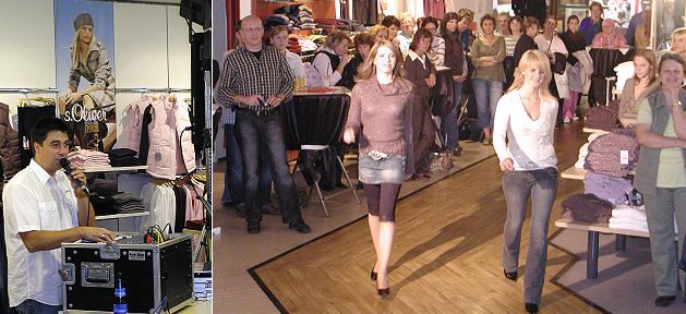 Mode Müller zeigt die Trends in Eberbach und der Welt (Fotos:Claussen)(jc) Das Eberbacher Modehaus Müller kennt die Trends in Sachen Mode und präsentiert seit langer Zeit das Angebot führender Marken auch im Rahmen von Modenschauen. In punkto Kundenbetreuung nimmt das Modehaus aktuelle Strömungen erfolgreich auf. So landete man bereits im vergangenen Jahr mit einer After-Work-Party einen Volltreffer beim jüngeren Publikum. Erneut in ein "Partykostüm verpackt" war die zweite Auflage dieses Veranstaltungsformates heute wieder ein "Erfolgstyp". DJ Frank zeigte sich als Musik-Vollprofi und sorgte für heißen Sound und gute Laune. Musikwünsche wurden gerne erfüllt. An der Cocktailbar war Barkeeper Carsten vom "Cafehaus am Neuen Markt" wieder der gefragteste Mann. Als Höhepunkt ging die trendige Modenschau mit den angesagtesten Marken unter mächtig Applaus vom gut gelaunten Publikum über das Parkett.