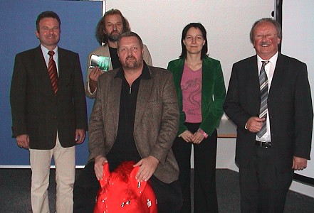 Landesbühne stellte neuen Spielplan vor V.l. Bürgermeister Bernhard Martin, Norbert Kritzer, Carsten Ramm, Gudrun Grimpe und Sparkassendirektor Gerhard Stock. (Foto:C.Richter)(cr) Die Badische Landesbühne (BLB) ist ein Synonym für Theater in Eberbach. Seit vielen Jahren bringt das Ensemble aus Bruchsal echtes Theater für große und kleine Zuschauer nach Eberbach. Dank der Unterstützung der Sparkasse Neckartal-Odenwald können in jeder Saison fünf Stücke aufgeführt werden, eines davon bei schönem Wetter auf dem Leopoldsplatz, die anderen im Großen Saal der Stadthalle Eberbach. Dieser Tage stellte der Intendant Carsten Ramm zusammen mit Verwaltungsleiter Norbert Kritzer und Theaterpädagogin Gudrun Grimpe den neuen Spielplan vor. Und der kann sich auch in diesem Jahr wieder sehen lassen: Klassiker, Modernes, Unterhaltsames und Nachdenkliches wechseln sich ab. Am 23. November beispielsweise wird das Stück "Cash - und ewig rauschen die Gelder" zu sehen sein. Mit "Die Jungfrau von Orleans" von Friedrich Schiller, das im Februar aufgeführt werden soll, kommt ein Stück Mittelalter nach Eberbach. "Biedermann und die Brandstifter" von Max Frisch ist das nachfolgende Stück, das am 10. Mai 2007 gezeigt wird. Den Abschluss der Spielzeit bilden am 29. Juni 2007 wieder zwei Freilichtstücke auf dem Leopoldsplatz. James Matthew Barrie´s "Peter Pan" am Nachmittag und "Was ihr wollt" von William Shakespeare in der Abendvorstellung.