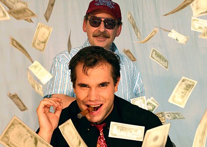Schwarze Komödie rund um den schnöden Mammon Hannes Höchsmann und Paul Steinbach in dem Stück von Michael Cooney. (Foto:BLB)(hr) Die Badische Landesbühne gastiert am Donnerstag, 23. November, um 19.30 Uhr in der Eberbacher Stadthalle mit dem Stück "Cash - und ewig rauschen die Gelder" von Michael Cooney.